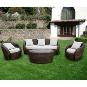 Трёхместный плетёный диван для улицы и террасы из искусственного ротанга торговой марки 4SIS из коллекции Авела - ротанговый диван ручного плетения овальной формы с мягкими сидениями за счёт подушек со съёмными чехлами и каркасом из алюминия, который отлично подойдет для дачи, сада, кафе, бара и ресторана, а так же других зон отдыха на открытом воздухе (как для частного использования, так и в сфере гостеприимства).