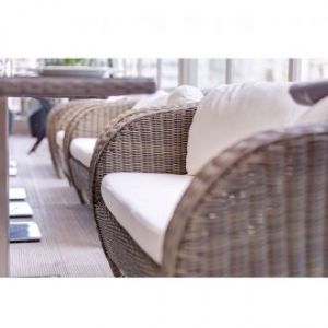 Дополнительно к ротанговому дивану можно приобрести плетёную мебель из этой же коллекции, которая в полном комплекте составит лаунж зону «Римини», включающую также 2 кресла с подушками со съёмными чехлами и журнальный столик со стеклянной столешницей.