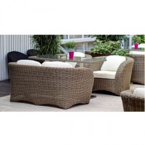 Двухместный плетёный диван для улицы и террасы из искусственного ротанга торговой марки 4SIS из коллекции Римини - стильный ротанговый диван круглого ручного плетения, мягкими сидениями за счёт подушек со съёмными чехлами молочного цвета и каркасом из алюминия, который отлично подойдет для дачи, сада, кафе, бара и ресторана, а так же других зон отдыха на открытом воздухе (как для частного использования, так и в сфере гостеприимства).