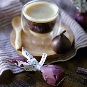 Состав: сухой инжир 45%, шоколад 37% с содержанием какао как минимум 52% - сахар, паста какао, масло какао, концентрированное сливочное масло, соевый лецитин, ваниль, сливки пастеризованные, ароматизатор бренди (<0,1%), сироп глюкозы, сорбитол. Может содержать следы орехов. Не содержит глютен.