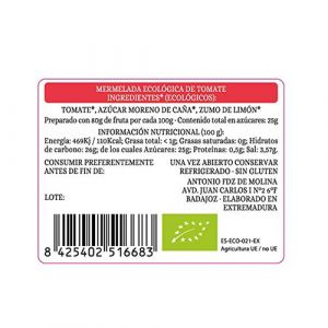 Джем из томатов био Cortijo de Sarteneja Mermelada Ecologica de Tomate - органическое варенье из помидоров с высоким содержанием томатов 60-80%, без глютена, без загустителей, красителей и консервантов от испанского производителя Кортихо де Сартения (Эстремадура, Испания).